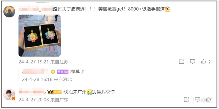 其次是参与感。10周年庆典期间,《开心消消乐》从线上走入了线下,官方选择了玩家呼声最高的10所城市举办“偶遇”活动,玩家在当天公布的具体位置打卡就能获得定制周年庆气球,官方还藏了个未曝光的玩法,如果关卡≥300关且关卡数正好是10的倍数可以获得定制徽章,从玩家反馈来看活动相当火热,有人为拿徽章当场打开游戏闯关。