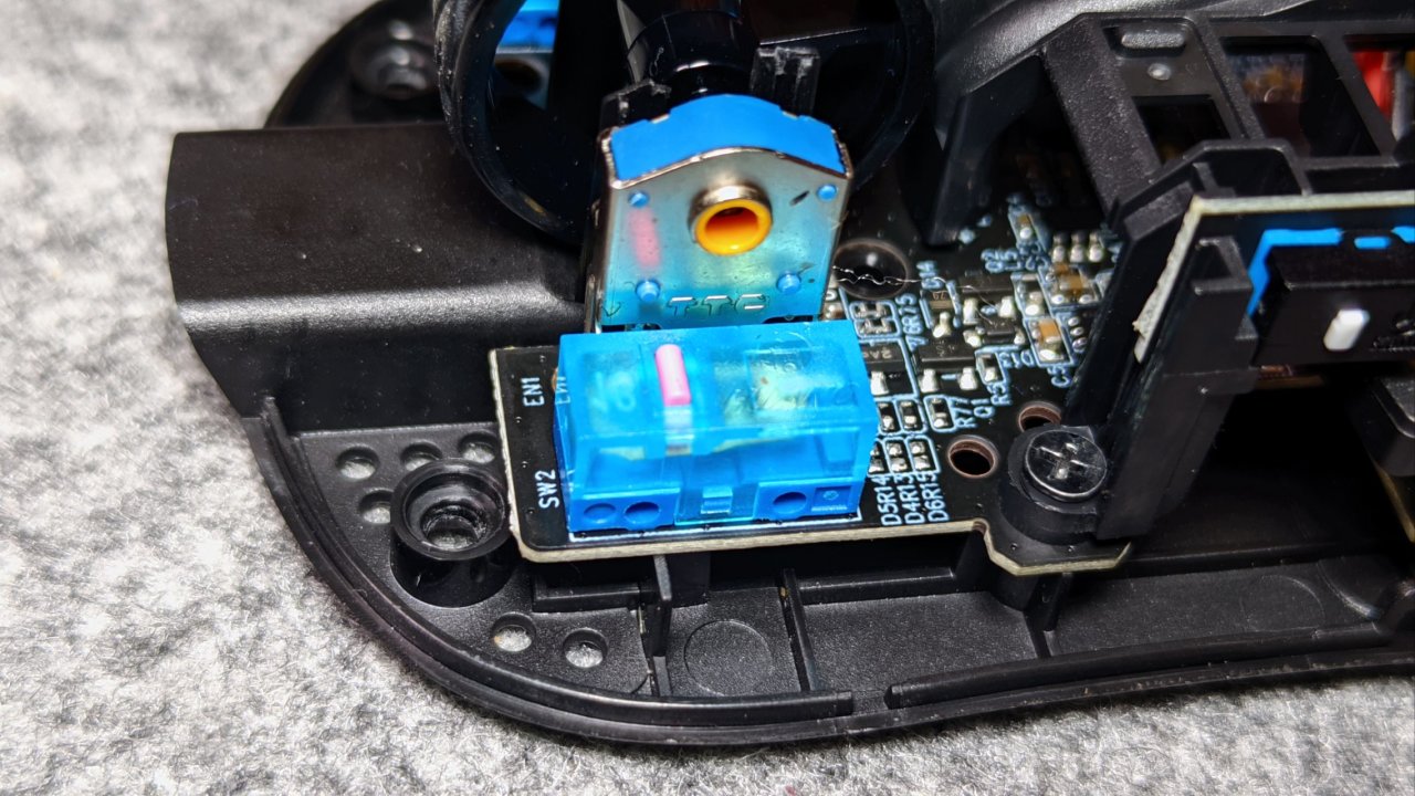 鼠标侧键做了分离pcb处理,是凯华的白点微动,手感适中,不软不硬。