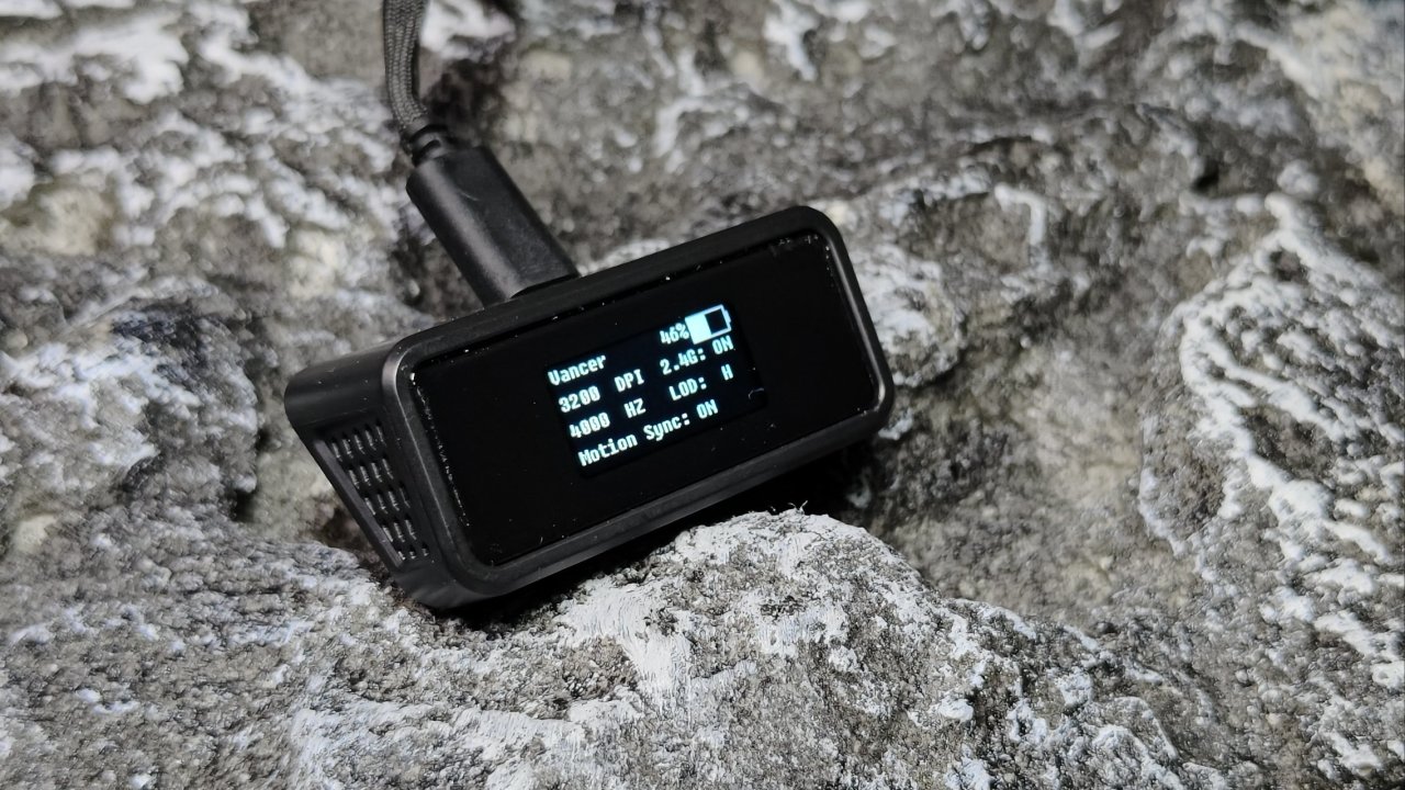 所以vancer更以一个玩家的视角代入,上线网页驱动,采用免驱操作,取消2.4G接收器,做成一个屏幕显示器,显示dpi/电量/轮询率等状态