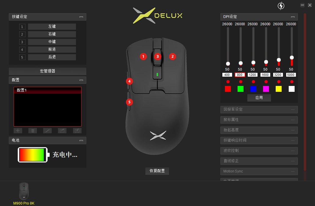 鼠标的驱动可以多彩的官网下载,驱动里面可以调节按键、DPI、回报率等设置,功能比较齐全。