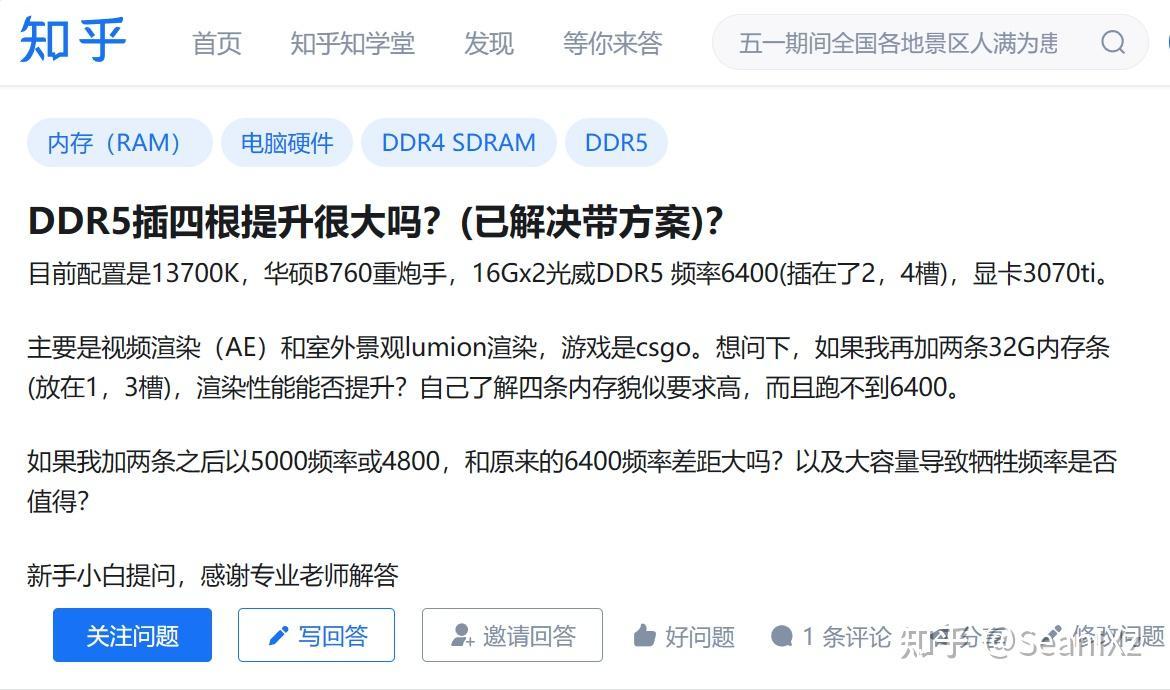 各方面瞭解了一下,知乎上也有不少小夥伴也是同樣的問題,同樣是生產力需求要升級內存,DDR5遇到4條是真的無解,沒法通過加內存來同時實現大容量和高頻率。