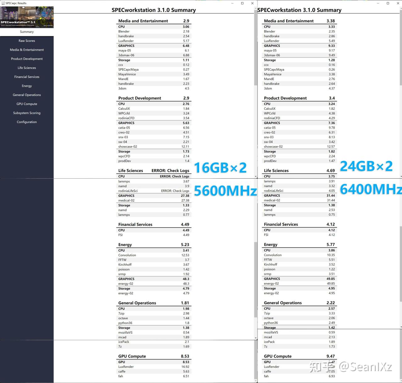測試中涵蓋了媒體和娛樂、產品研發、生命科學、能源、金融服務等行業的專業應用,可以較好的體現出CPU和內存在運行各行各業專業生產力軟件時的工作狀態。