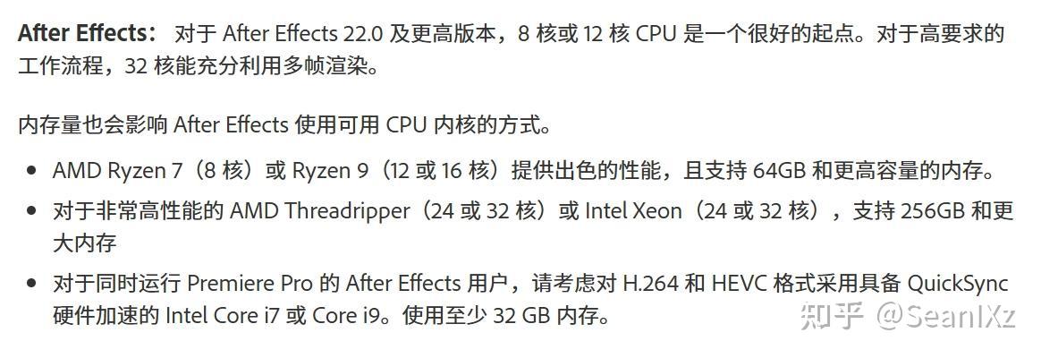 其實Adobe官網就有內存相關介紹,目前軟件對CPU多核利用比較好,是多核同時渲染多幀的工作方式,所以越是高端的多線程處理器對內存容量需求越高。