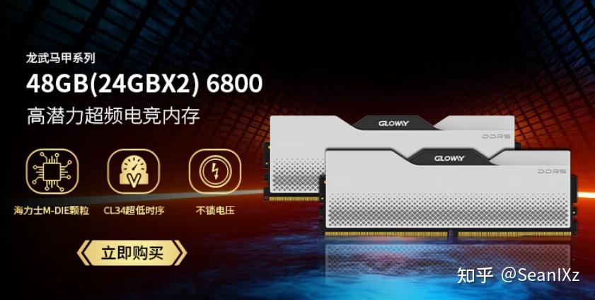 內存方面,我選擇的是光威(Gloway)龍武系列48GB(24GBx2)套裝 DDR5 6400,沒別的24GB×2這個規格里面它的性價比最高,國產在價格方面還是非常香的,光威目前也屬於大廠了,品質都還可以,售後也很好,也不會有水貨不給保修的問題。