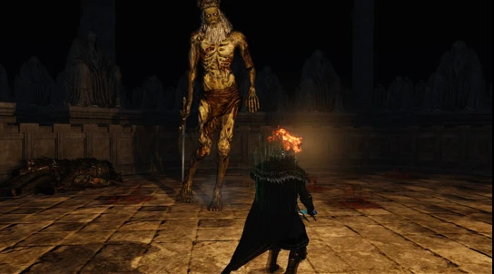 流浪者在王之迴廊擊敗鏡之騎士,完成了老王設下的試煉關卡。隨後深入阿瑪那祭壇和不死靈廟,擊敗“王盾”韋施塔德,找到靈廟深處徘徊的老王遊魂,取得王者證明的戒指。