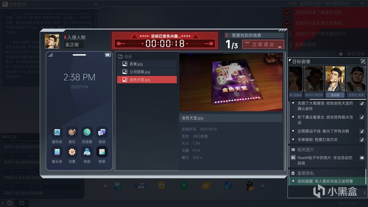 当然,游戏的玩法内容还包含但不限于:强行突破防火墙的节点攻击、收集调查对象兴趣爱好的钓鱼网站、收集特定角色声纹之后的电话诈骗等手段——你们啊,总能给我整点新花样.jpg