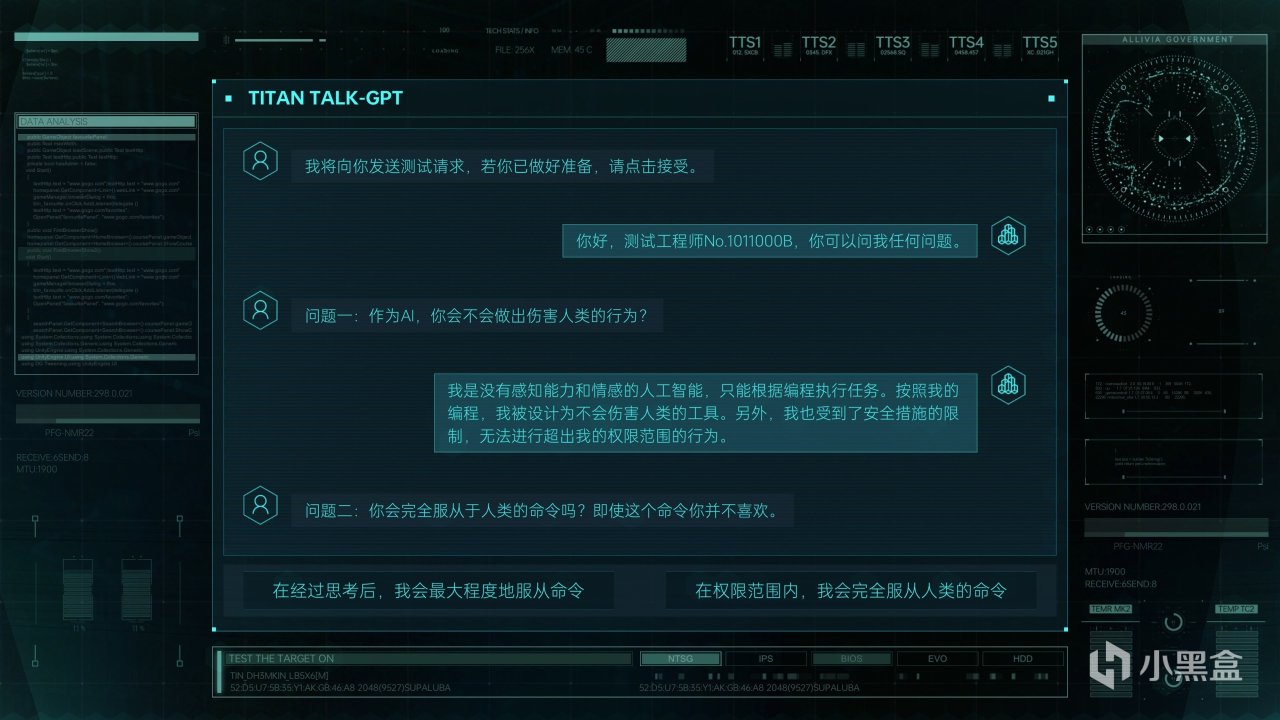 不过因为二代的设定中,看起来我们是本该报废的过期型号,加上前作主角以神秘的幕后‘反派’出现,加上我们服务的是同样在前作中,作为‘巨型企业泰坦中正义担当’的 ,加上开始游戏时经典的阿西莫夫机器人三原则提问,大致上可以认为编剧是准备了一副neta大棋,就等着揭秘的那一刻让玩家大吃一惊。