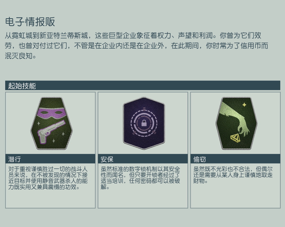 而电子情报贩重于前期可以偷东西和撬锁,去获取物资和任务道具。