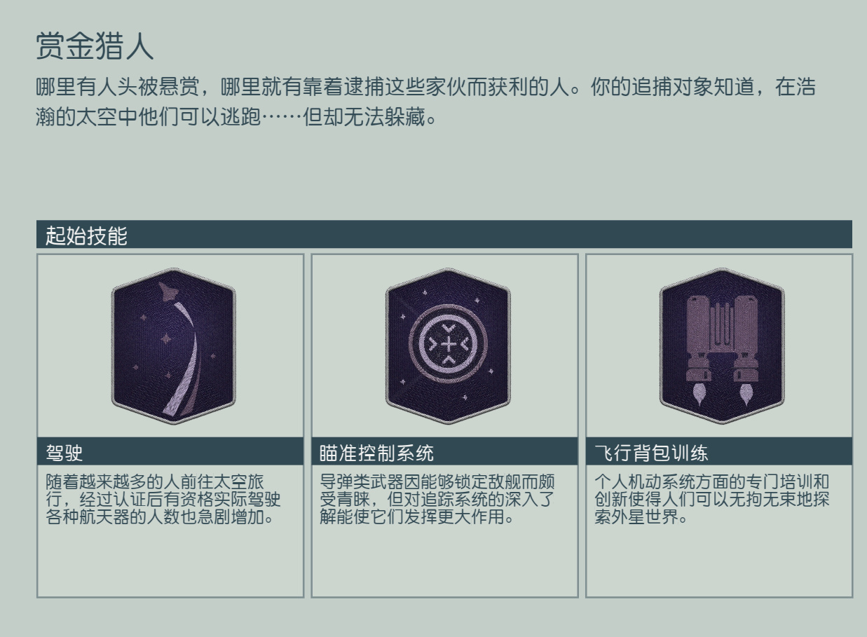 另外喜欢开飞船打架什么的推荐选赏金猎人和长途运输司机