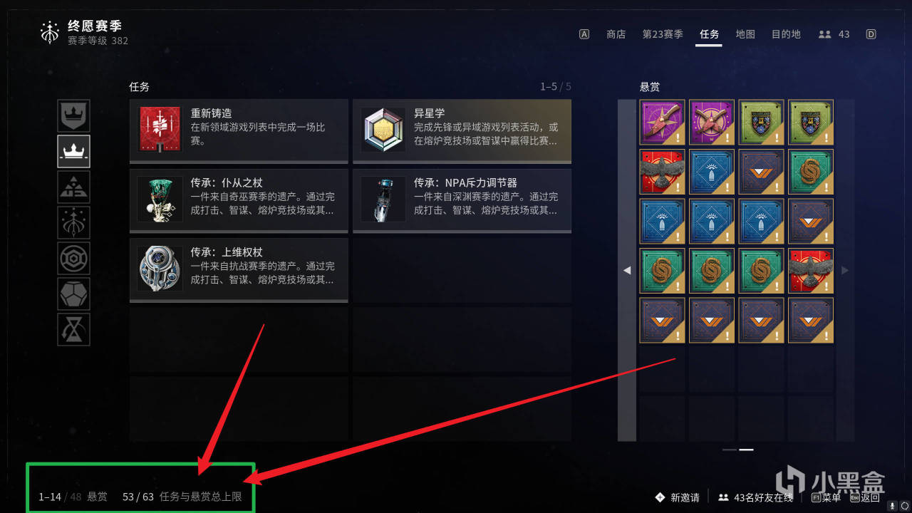 - 所以大家會預存懸賞任務,在新賽季再完成,快速的獲得賽季季票中的經驗加成以及快速的解鎖神器模組