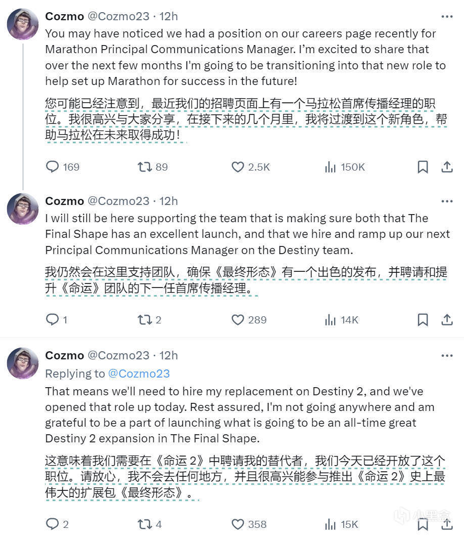 命運2最後一個老牌社區經理COZMO轉崗至馬拉松項目