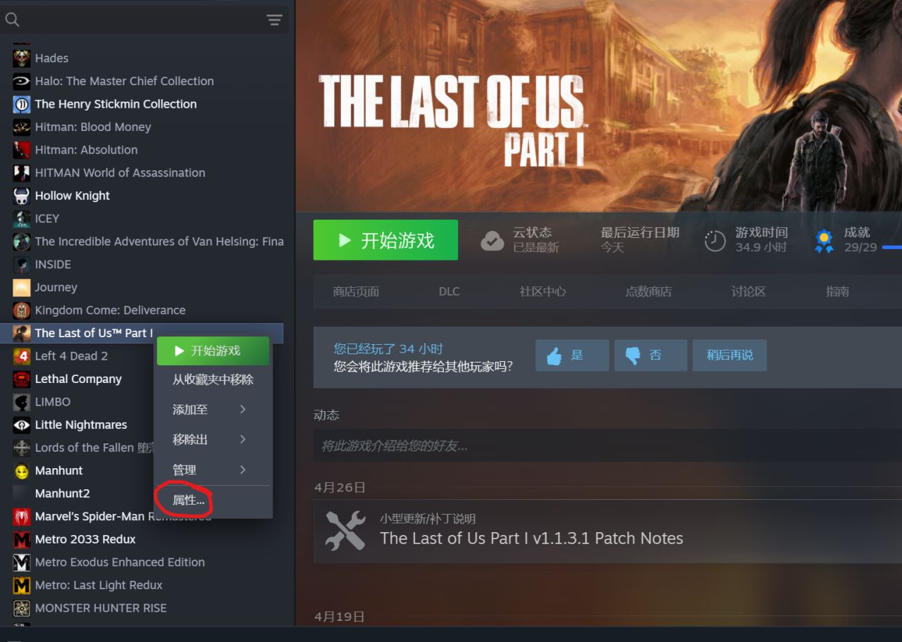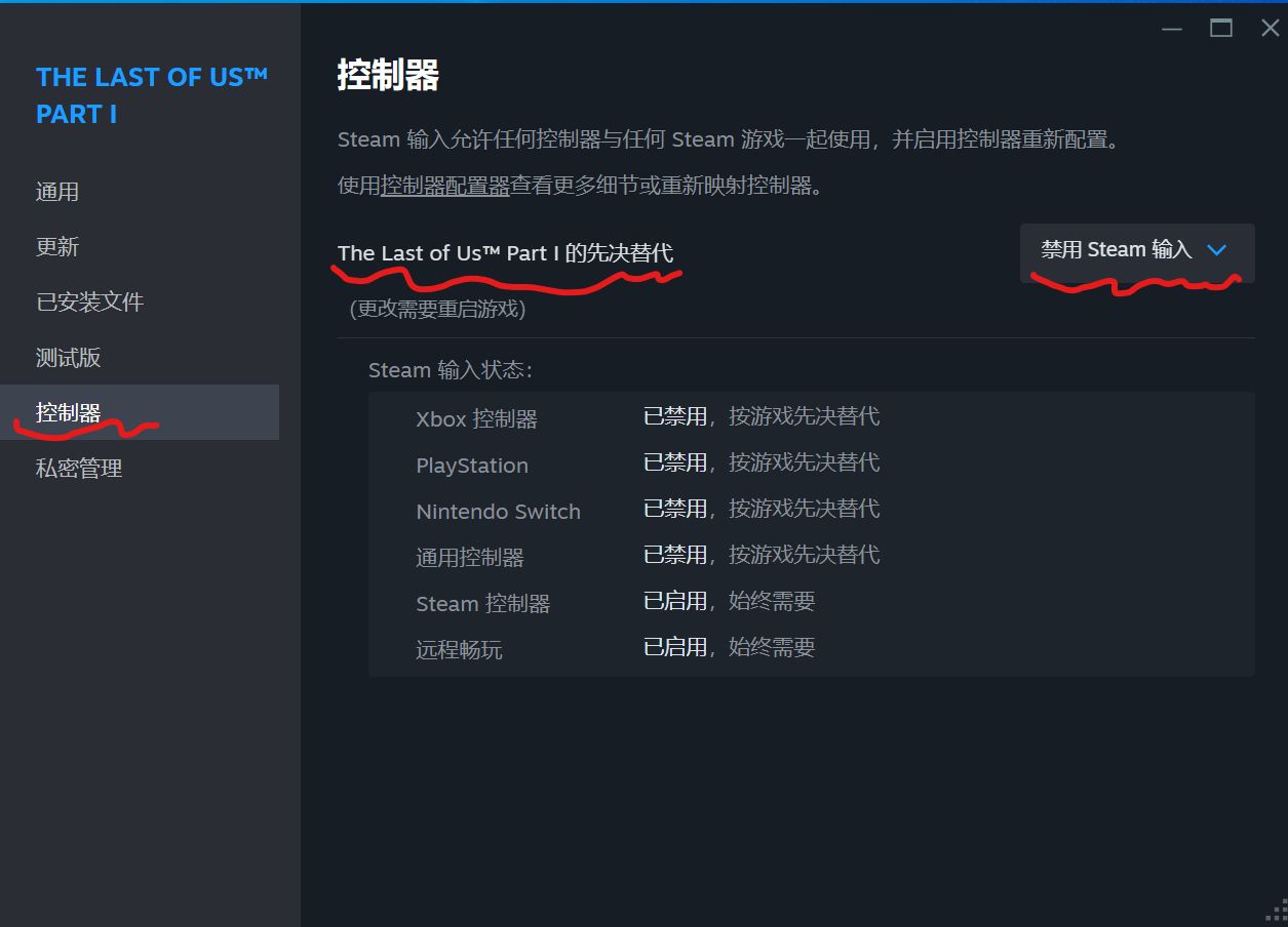 找到能完美适配ps5手柄的游戏,这里以最后生还者1为例,在steam中,右键对马岛之魂,点击属性,控制器,steam控制输入,选择禁用steam输入即可。