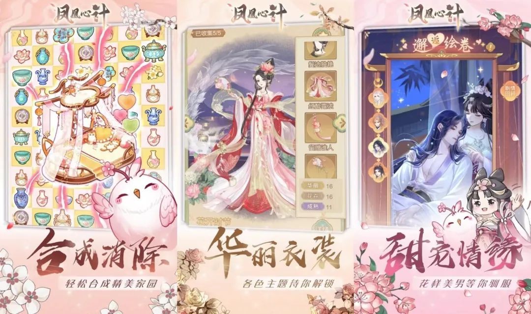 特别是火羽信息的两款游戏,在APP端的成绩差距较大。2021年7月上线的《盛世芳华》成绩尚可,最高达到过iOS畅销榜75名,两年后才逐渐滑落至200名以外。去年12月上线的《凤凰心计》做了将合成玩法引入国风宫廷换装游戏的尝试,但成绩不太理想,从未进入过iOS畅销榜TOP200。然而它们都能在小游戏平台找到一席之地,或许意味着小游戏平台的女性向市场仍有很大的挖掘空间。