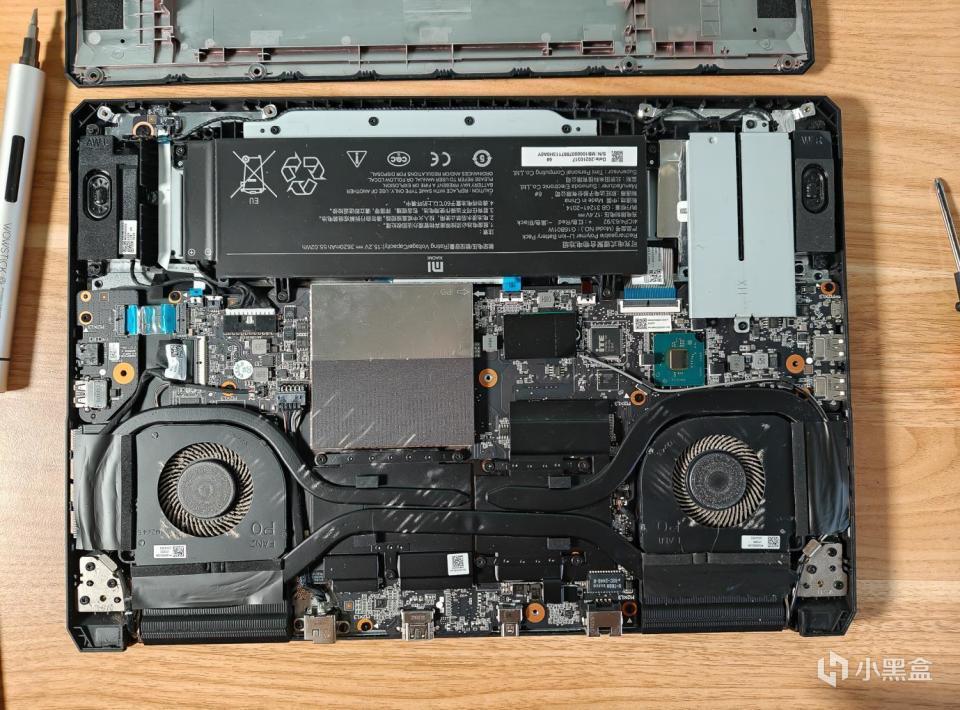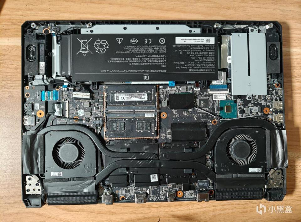 打開後的樣子。三熱管雙風扇。上圖右上角灰色蓋子下面是硬盤,有2個硬盤位。中間的蓋子下面是內存。