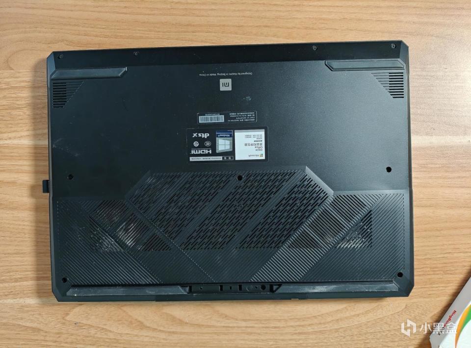 將筆記本電腦翻轉過來,這背面可以看到進風口出好多灰。背面一共有10顆螺絲。