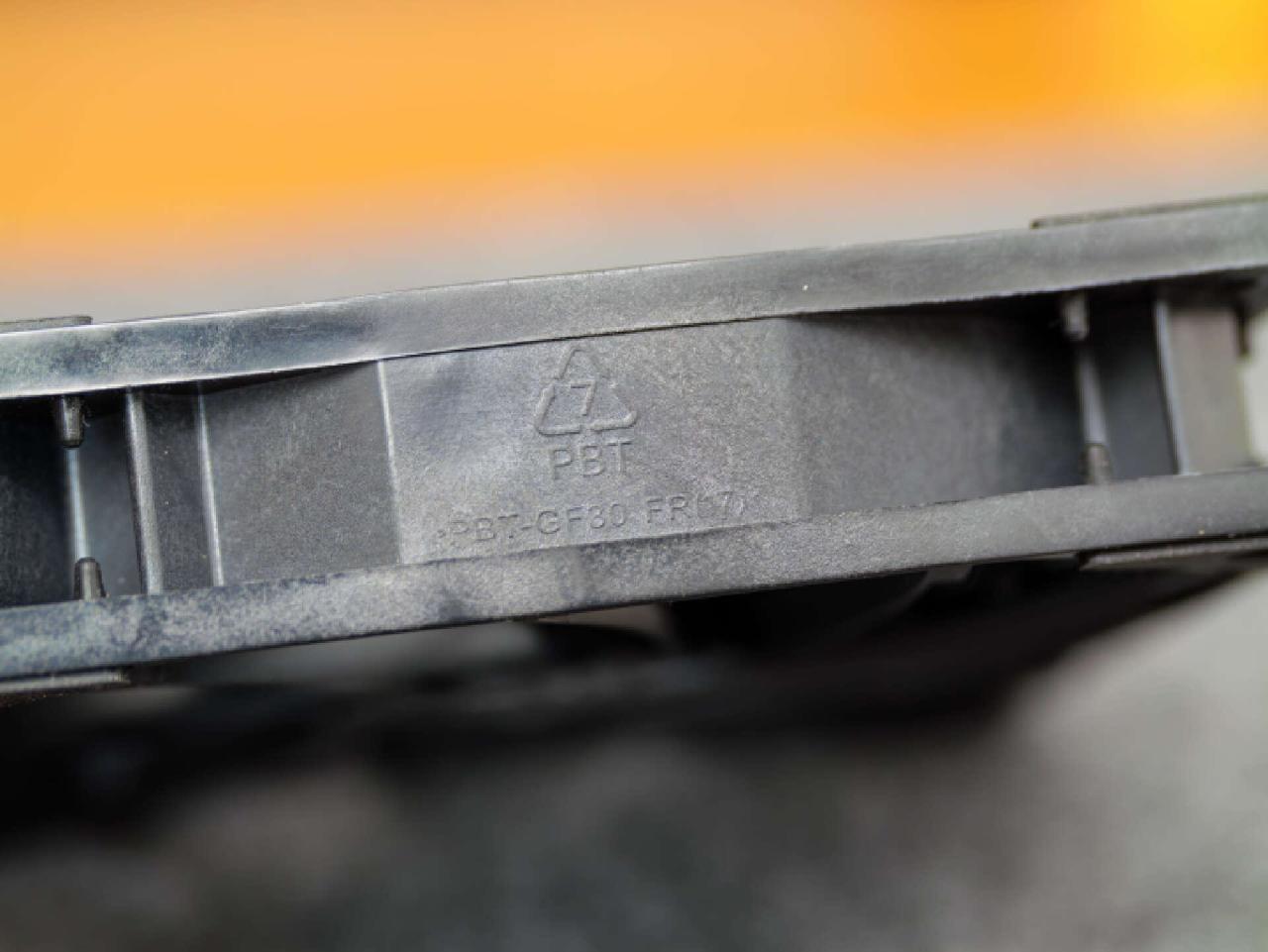 为了使风扇更为坚固耐用,这款风扇使用了机械强度高、硬度大、耐高温、具有阻燃性的PBT-GF30FR(17)材质,并且为了对抗风扇在高速转动过程中因离心力产生的形变,还在其中加入了30%的玻璃纤维,使得整体耐用度很强,明显是工业级产品为了质量舍得下血本的做法。