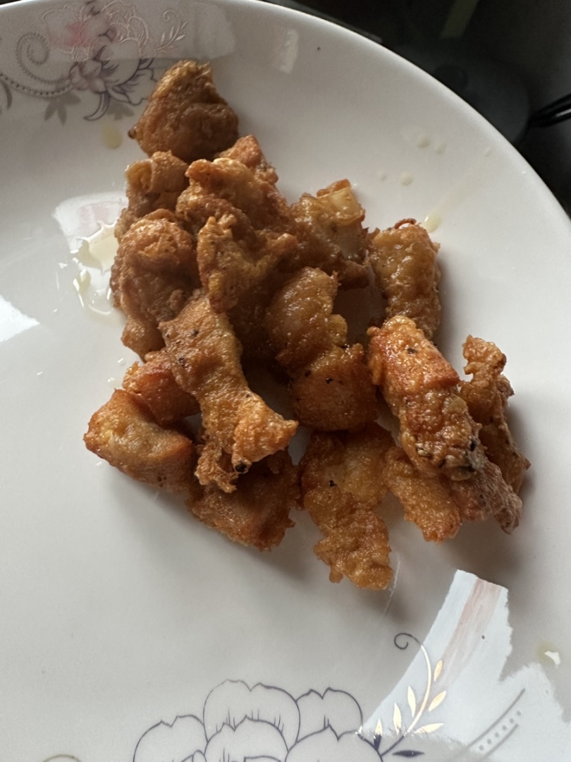 3.准备热油,五成油温下入鸡丁,中小火炸至金黄捞出备用