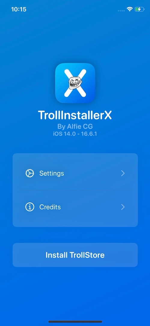 5,返回桌面,打開TrollInstallerX,點擊Install TrollStore,如果有彈窗提示需要確認權限,點擊好,或者Yes,確認開啓。