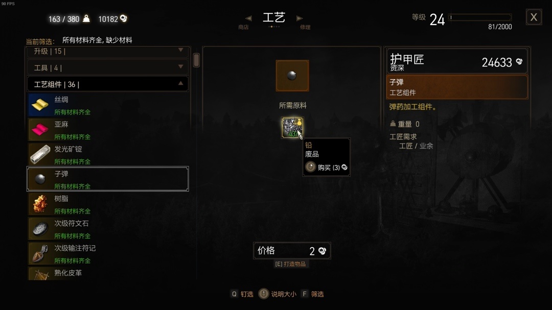 槍支的製作:從 10 級開始,決鬥手槍圖紙將開始出現在鐵匠鋪中。此後,每隔幾個等級就會有不同槍械的新圖紙在鐵匠鋪中出售。