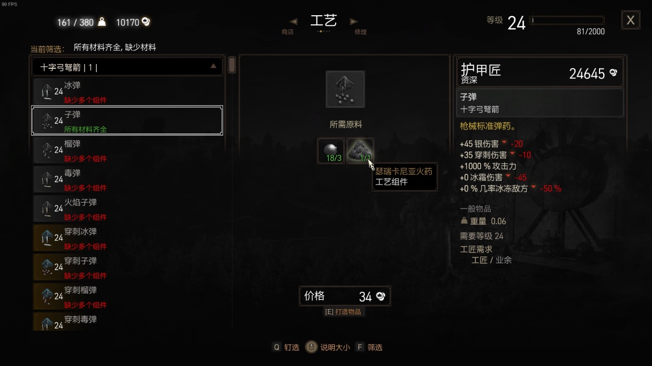 彈藥等級從10級開始製作第一階彈藥,每隔12級即可製作下一階。
