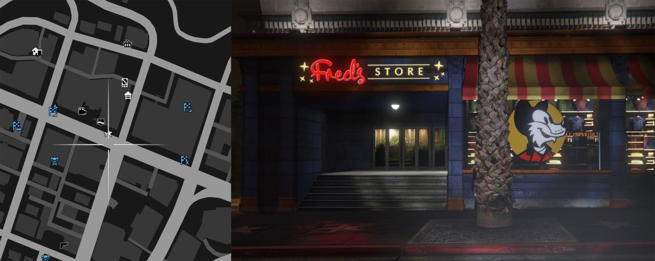 在好麥塢街區有一家弗雷德商店,售賣影碟和周邊,正是模仿了現實好萊塢相同位置的迪士尼商店。