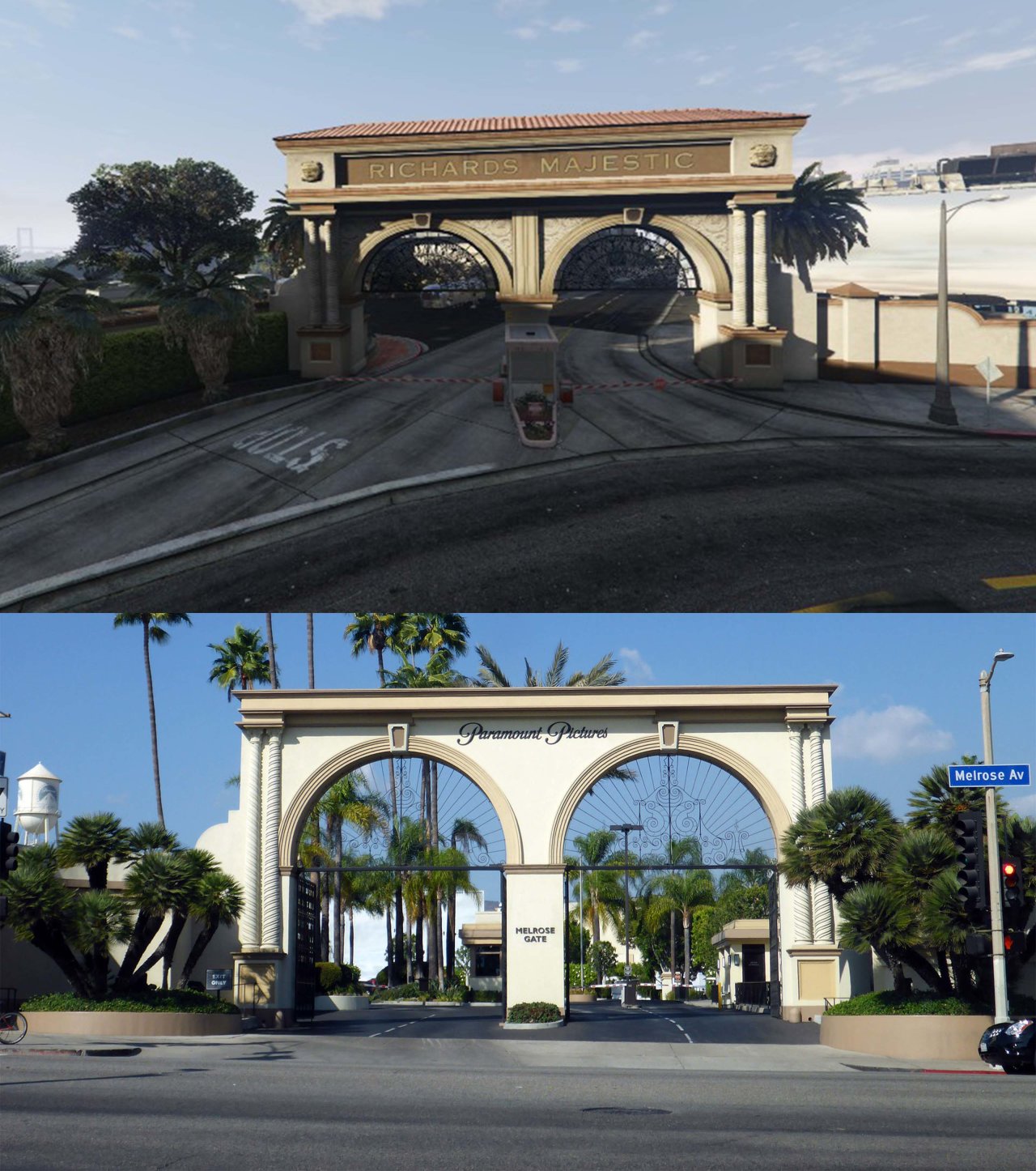理查茲尊爵影業的主要原型是米高梅和二十世紀福克斯,此外它還是個大筐,什麼華納、哥倫比亞也都會往裏裝;遊戲裏最大的電影外景城原型則也來自派拉蒙影業的好萊塢外景城,高情商點叫集大成者。