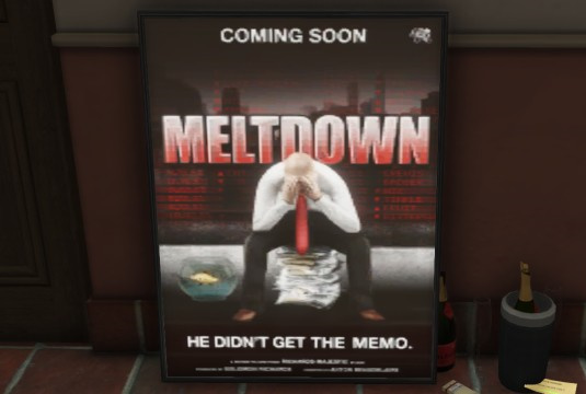 遊戲裏也有同名任務,麥克從首映禮鯊回自家別墅拯救被梅麗威瑟綁架的家人。該任務後《崩潰危機》可以在遊戲裏的影院觀看,這是遊戲裏可觀看的三部電影之一,除了上文的“機器人”,還有一部藝術片Capolavoro(意大利語“傑作”),在之後的幾期我會作更詳細的解介紹。