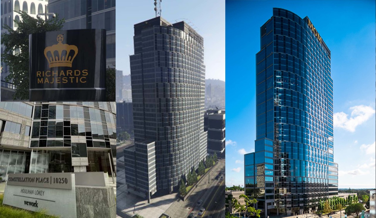 而大家更熟悉的理查茲尊爵公寓原型是洛杉磯的星座廣場(Constellation Place),前身爲米高梅大廈(MGM Tower),在米高梅倒閉前被作爲總部大廈使用。遊戲設定裏的瀕臨破產可能就來自這一茬。