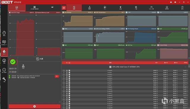 实际测试下稳定性,运行OCCT强力模式测试,等于是双开CPU和显卡,比如看CPU已经是320W了,显卡也是300W。