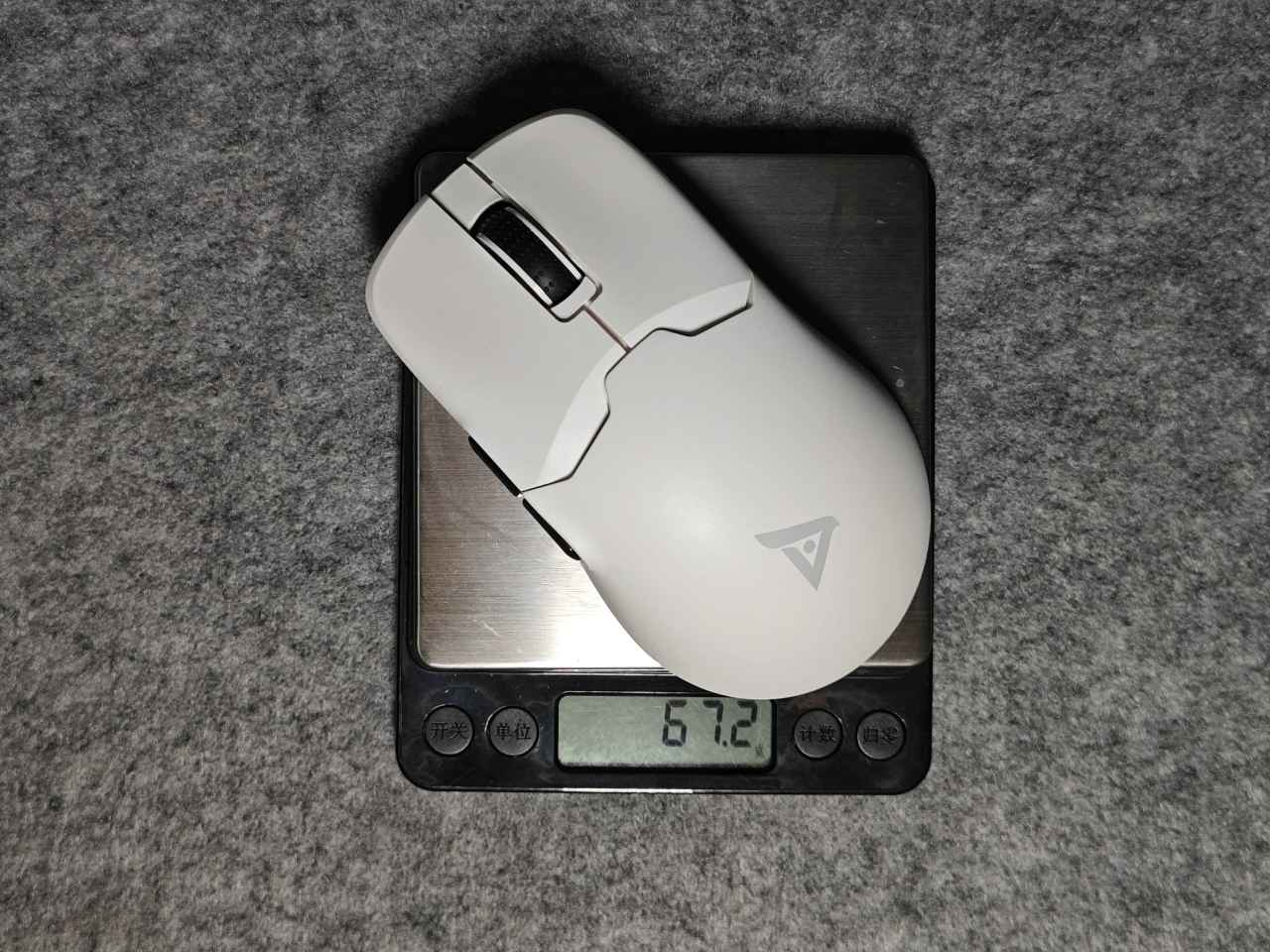 重量方面,鼠标也是采用了轻量化设计,实测重量为67.2g,这个重量配合这个模具,即便是长时间握持也不容易疲劳。