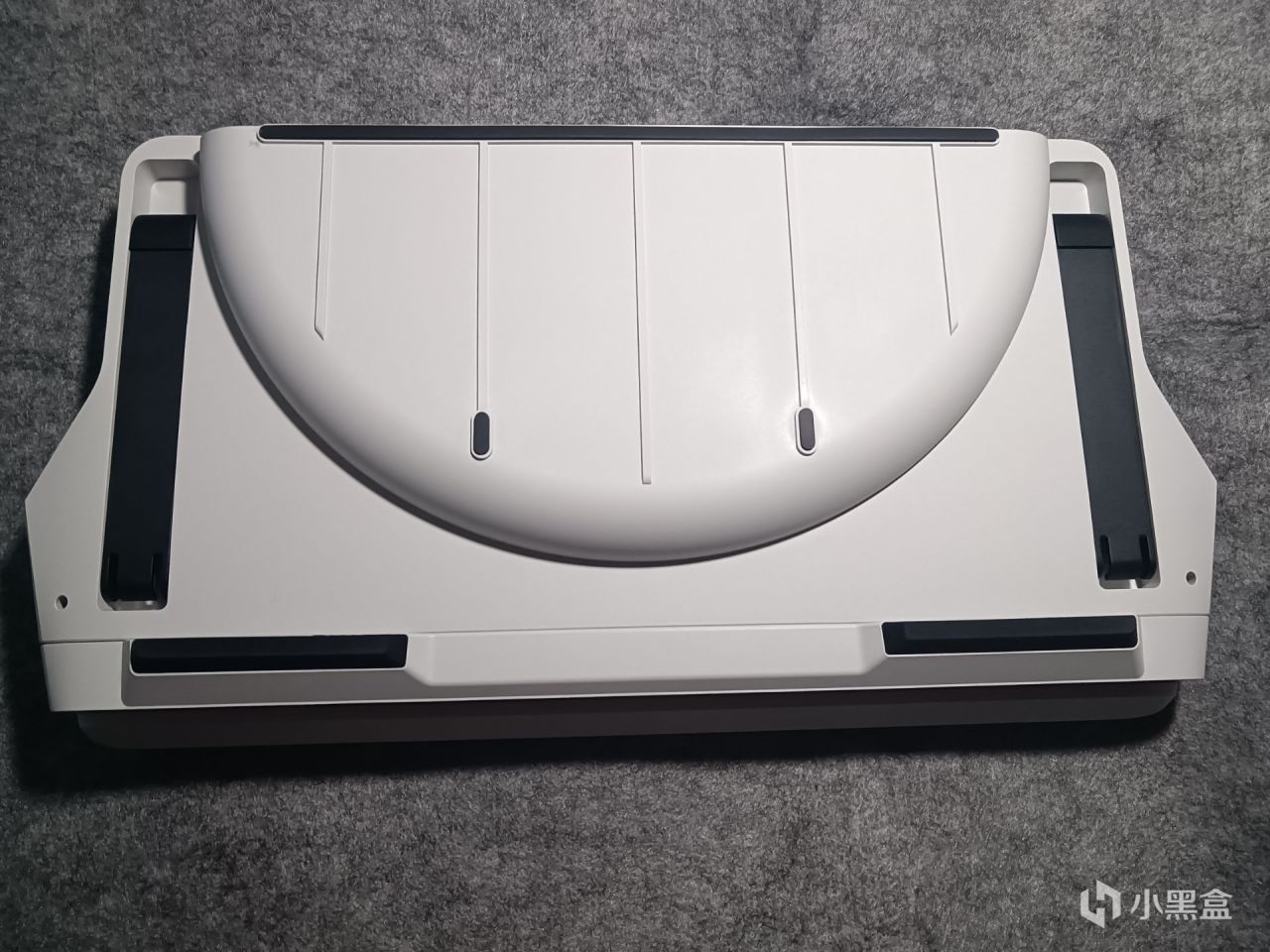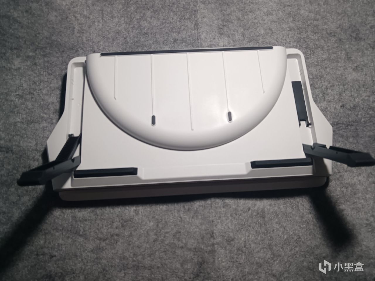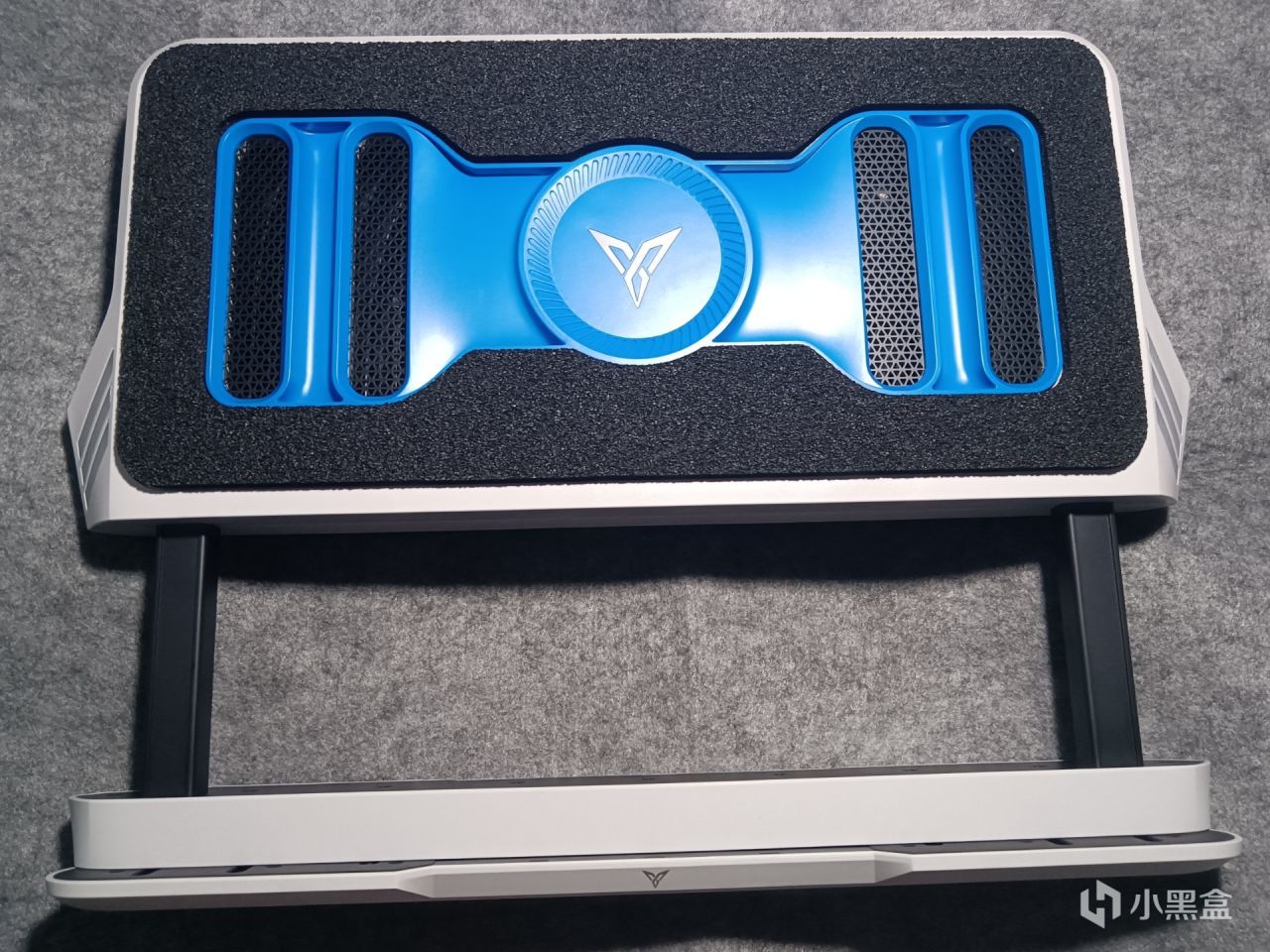 为了适配各个尺寸的笔记本,前面的部分还是可以拉开的,主要是为了出风口可以对准电脑的进风口,并且边缘部分做了一个可以升降的挡板,可以有效防止笔记本电脑下滑。