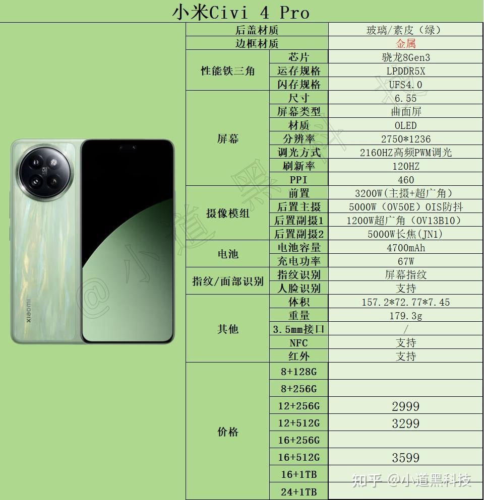 简评:小米Civi 4 Pro基本就是为女生定制的,影像能力强,尤其前置摄像头自拍更是女生的菜,机身轻薄质感好颜值高也非常适合女生。
