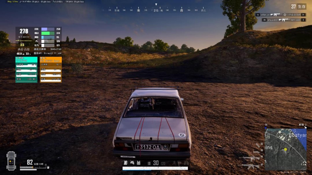 《PUBG 绝地求生》游戏中,三极致画质,4K分辨率,渲染比例100%,游戏实际帧率为200FPS左右,大部分时间都能维持250FPS左右;
