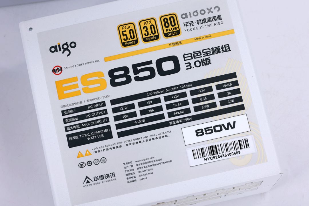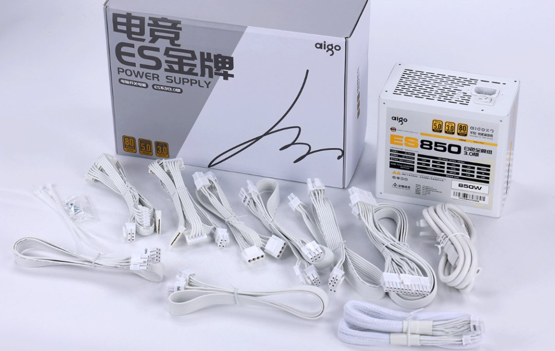 根据整机功耗,电源选择的是同样来自爱国者的ES850 ATX3.0白色金牌全模组电源。