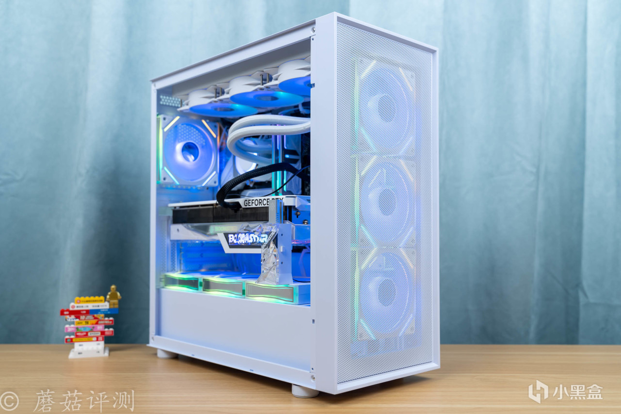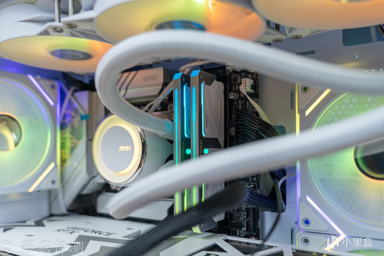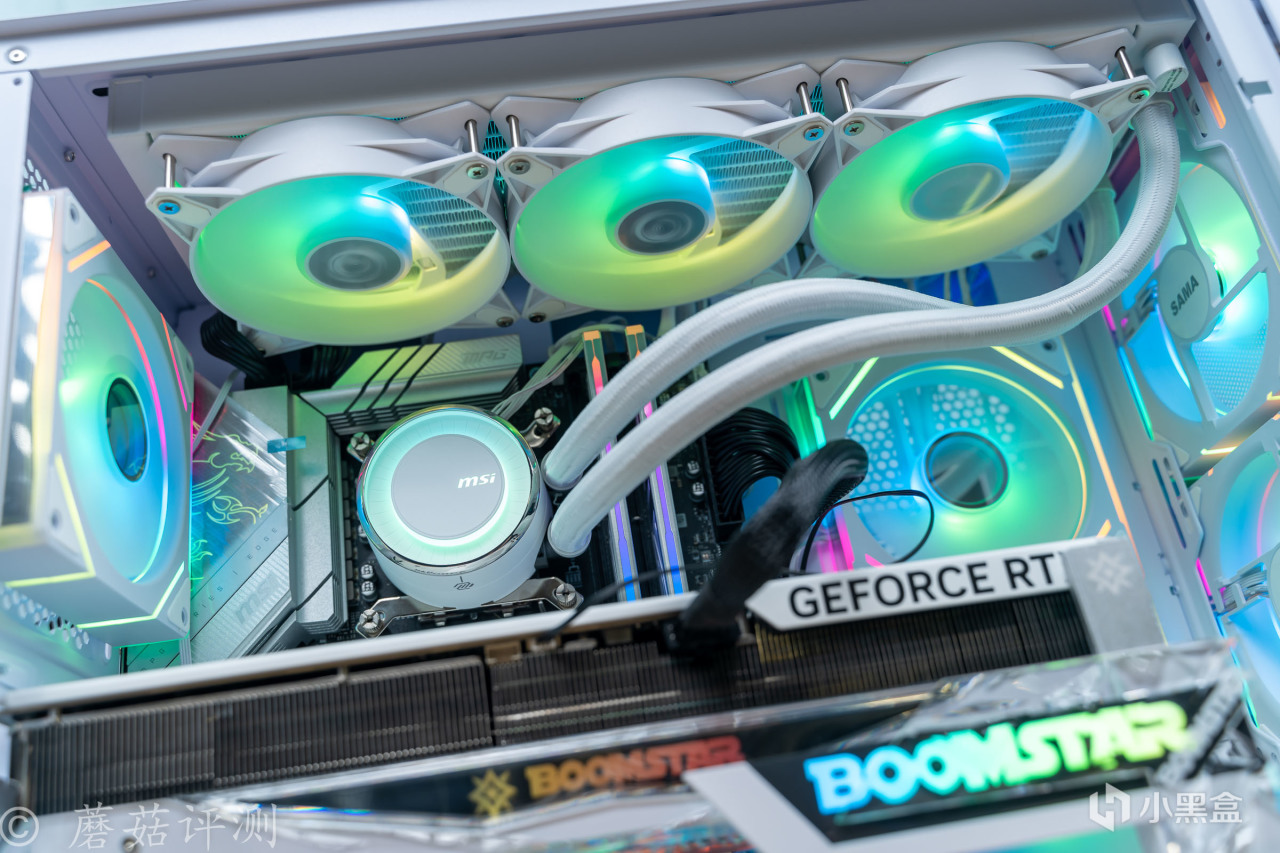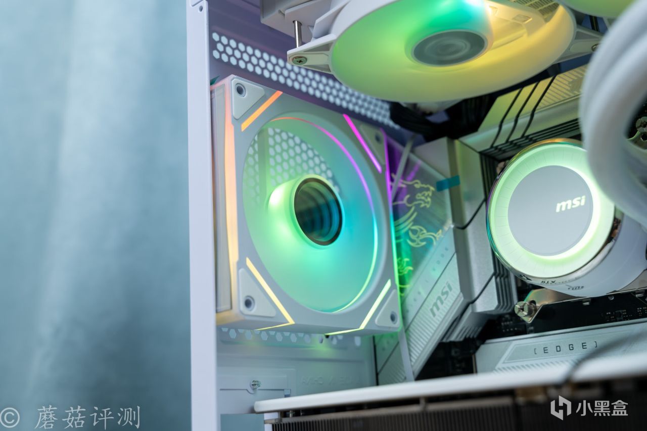 ▼机箱内部的各种硬件,被各种颜色的RGB灯光包裹,整体视觉观感超级棒。