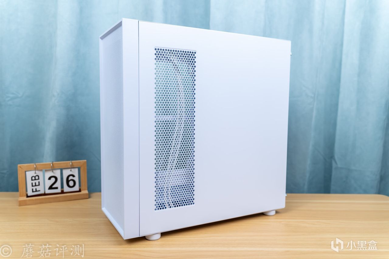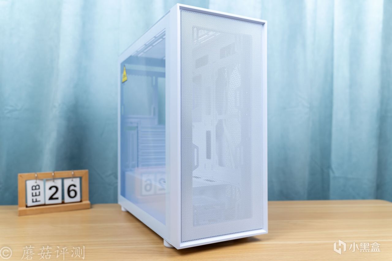 ▼机箱整体的外观还是挺漂亮的,机箱侧面有大面积的侧透玻璃,白透设计的。