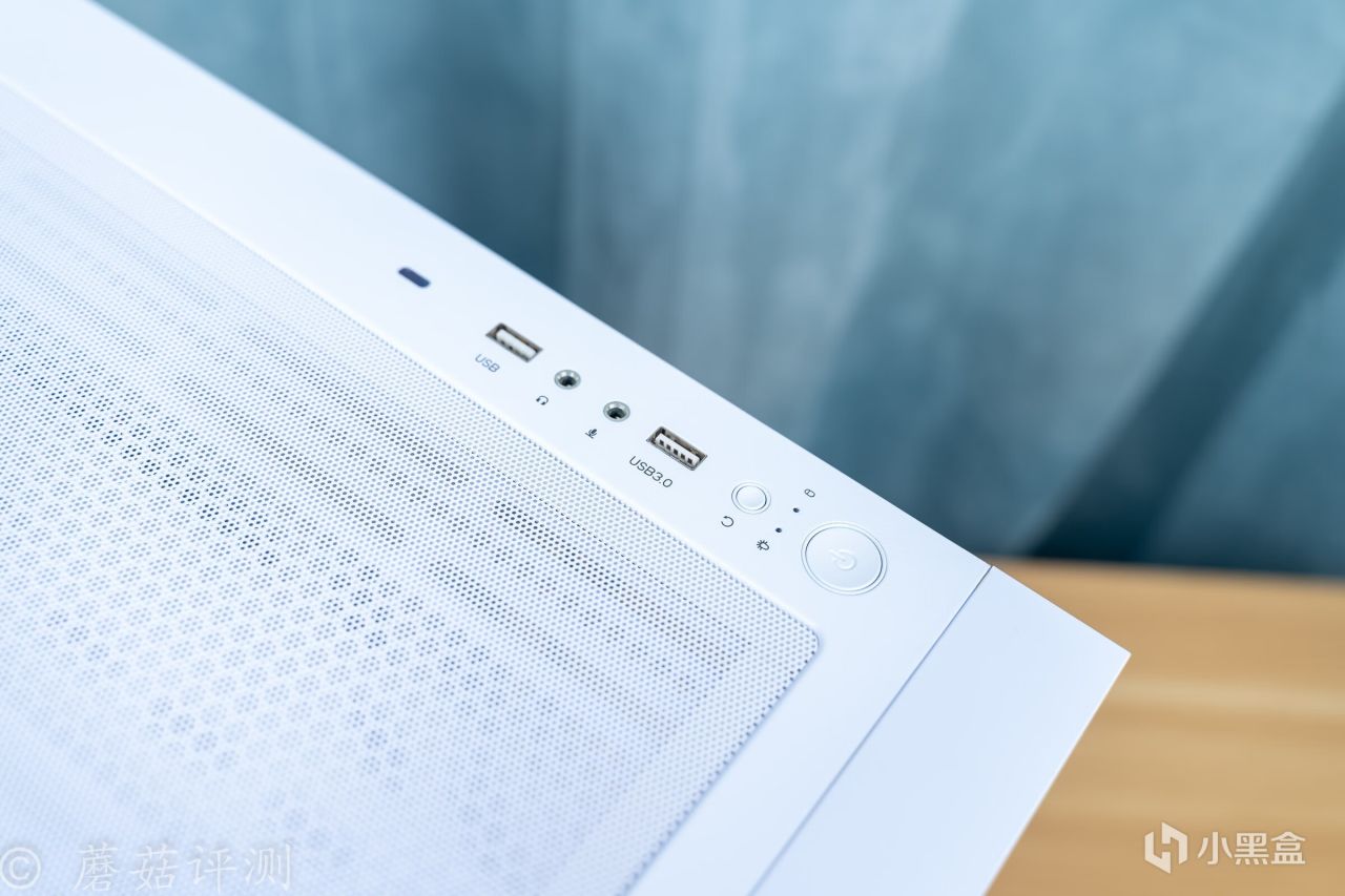 ▼机箱前部大面积的金属冲孔网,搭配内部的机箱风扇,整体的颜值很漂亮,进风也非常充足。