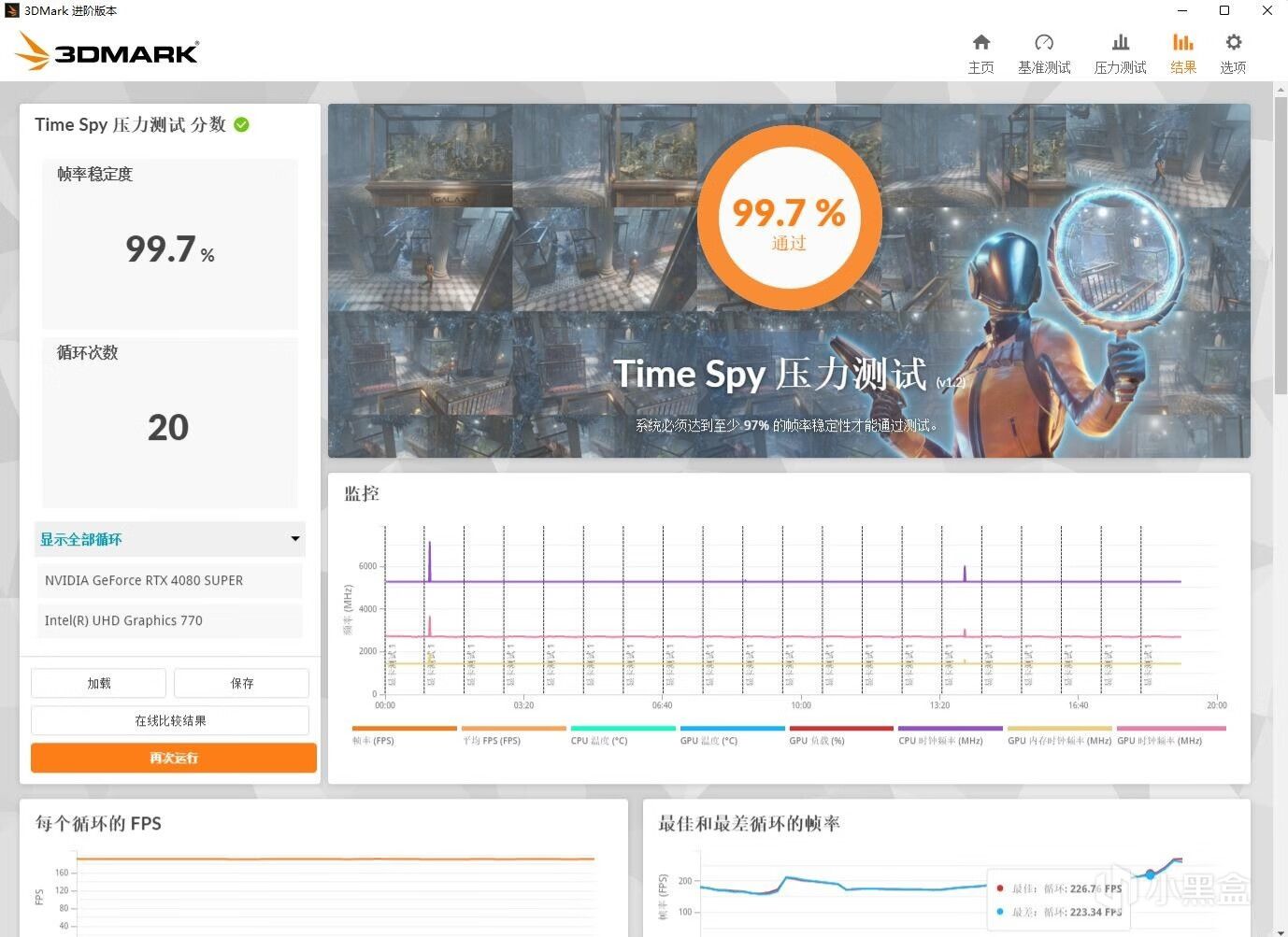 ▼跑个3Dmark的TS模式,帧数稳定率在99.7%,非常稳定。