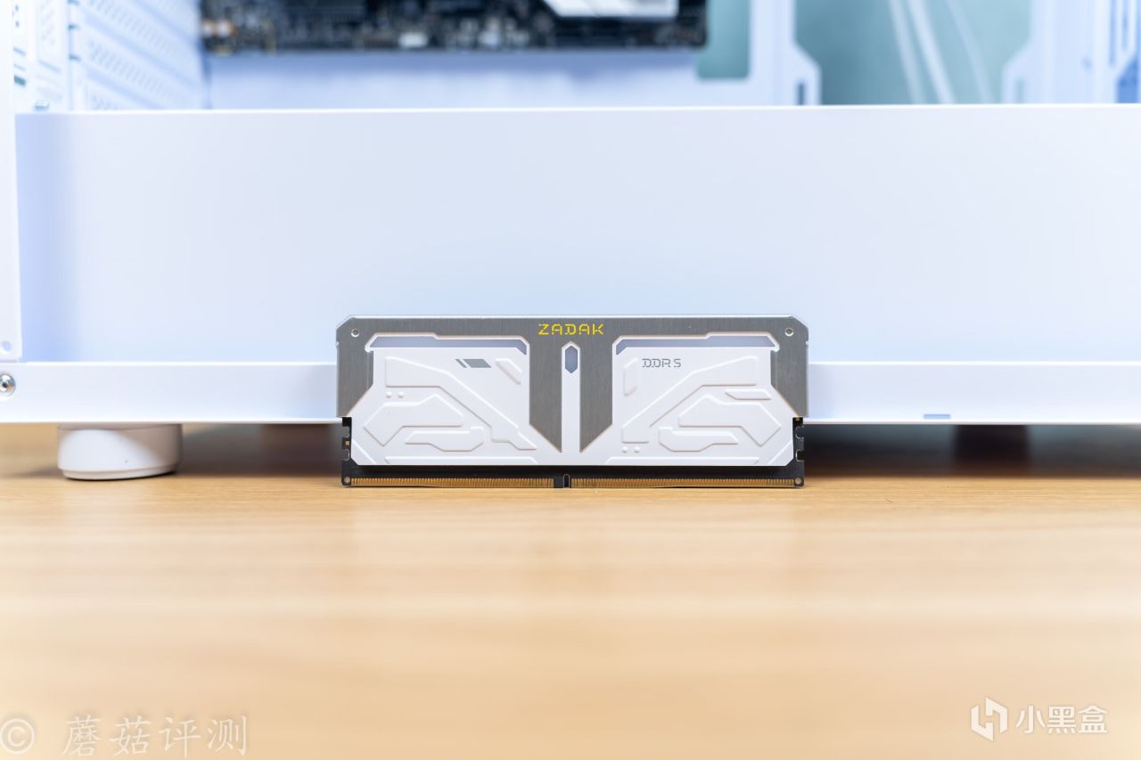 ▼内存用的是宇瞻的ZADAK的SPARK内存,16GB*2 6000MHz,这套内存的金属马甲非常漂亮,采用两种部分表面处理器的撞色设计,侧面是白色的、烤漆质感的,顶部是银色的,拉丝质感的,中间是多段式的RGB灯带。
