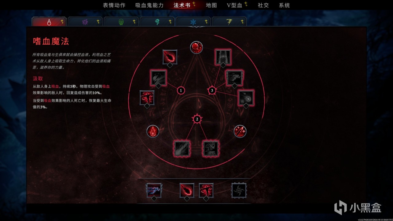 18般武藝樣樣精通,還同樣精通魔法,玩家在根據劇情的指引擊敗v型血中的各個等級的boss後,會根據對應獎勵獲取技能點、裝備圖紙和吸血鬼能力。不過我們這裏主要還是講技能點。有了技能點之後,我們就可以在法術書界面進行技能的學習,玩家一共可以學習的魔法有六種,每一種魔法都擁有自己不同的特性,玩家可以根據自己的喜好選擇。而且擊敗boss後還可以獲得一些寶石對技能進行鑲嵌,提升技能效果。