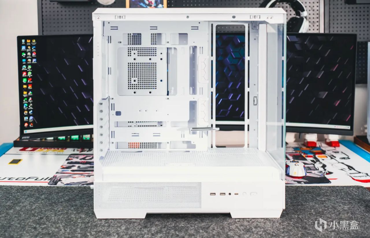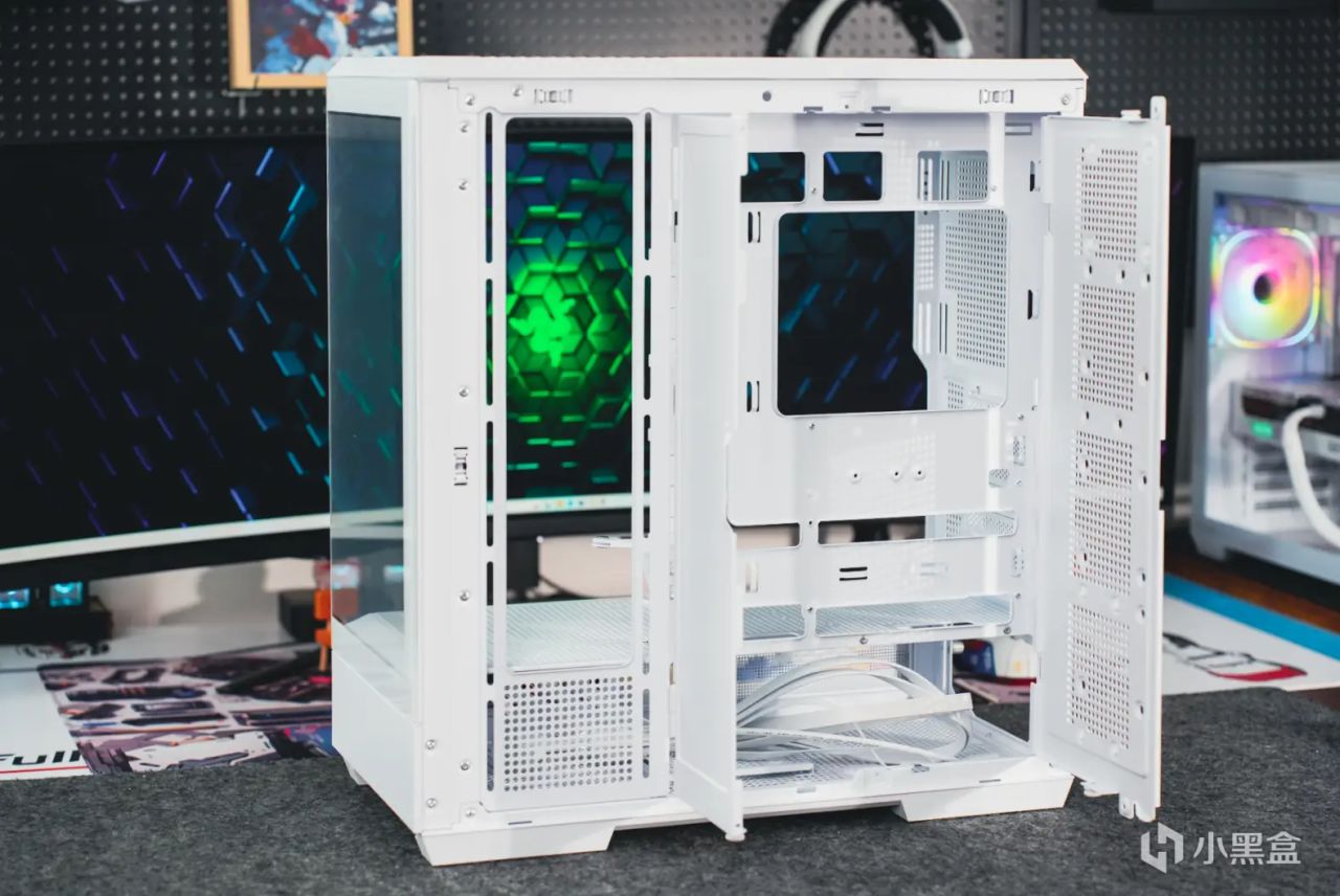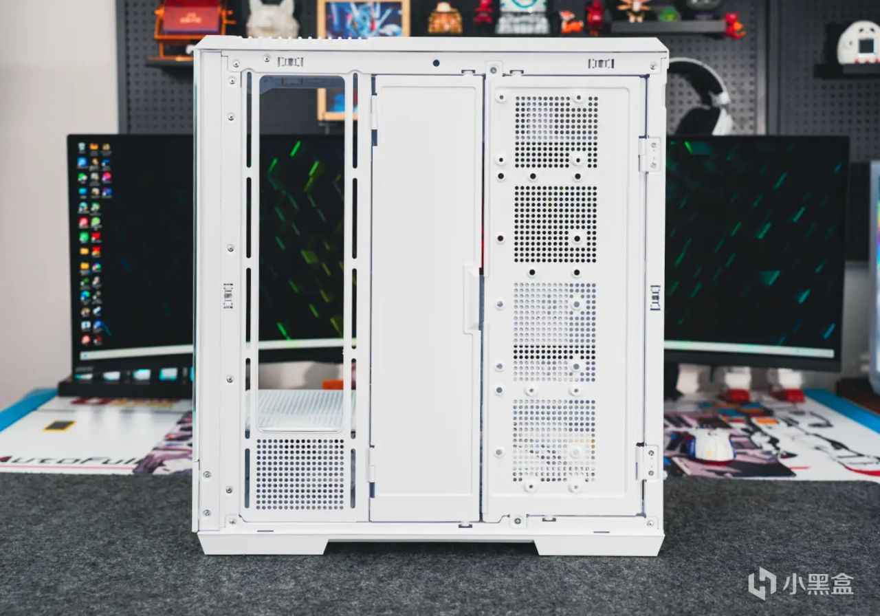其次是散熱方面,不但可以支持雙360水冷或者185mm的風冷散熱器,同時120mm風扇位也拓展到了10個。並且左右側板面板以及頂蓋都是採用了卡扣式結構,免工具拆解方便;至於底部的防塵網也是支持免工具拆卸,清灰