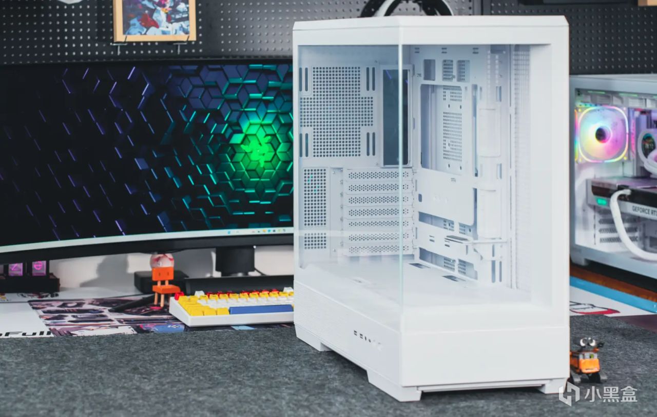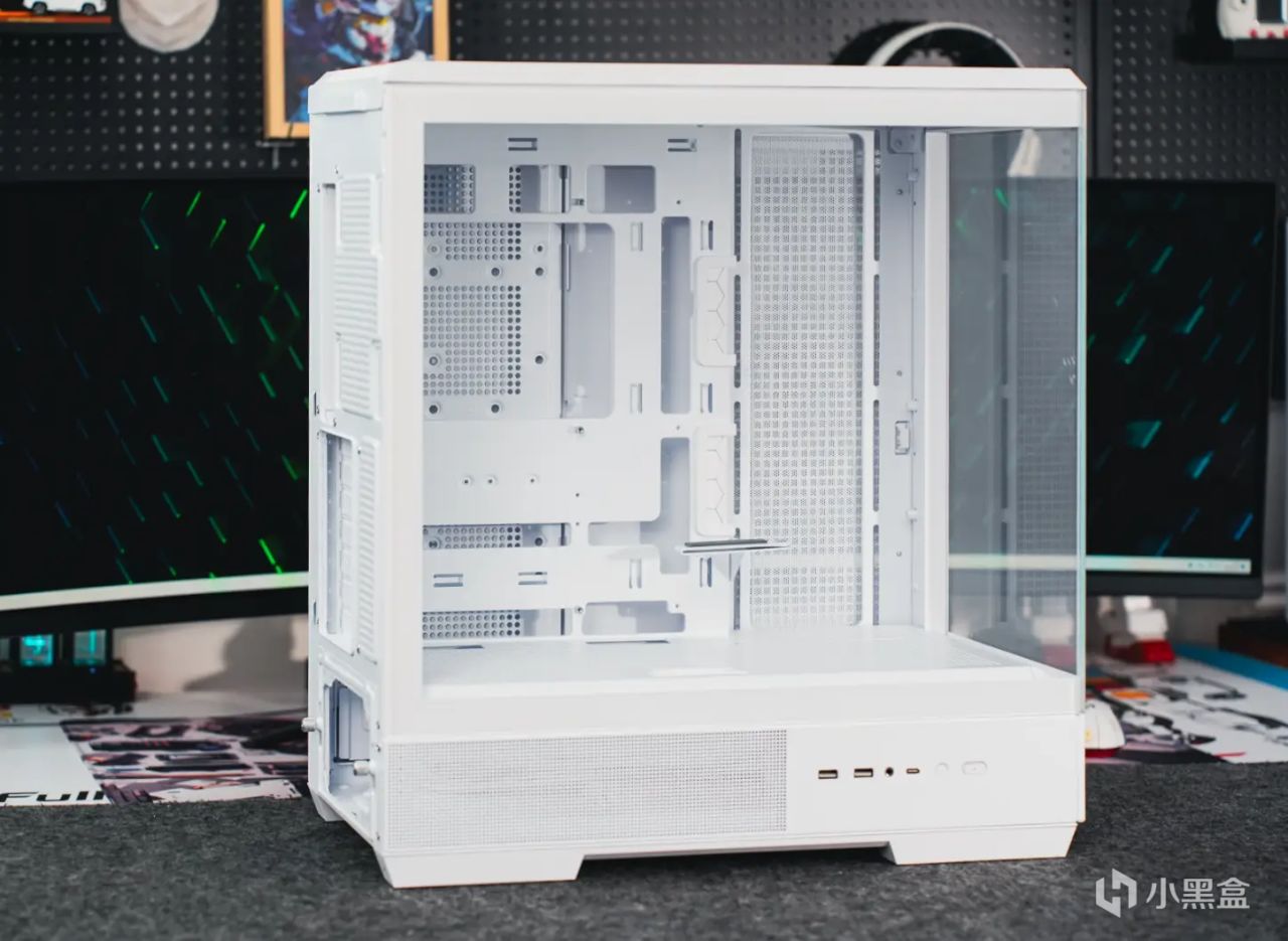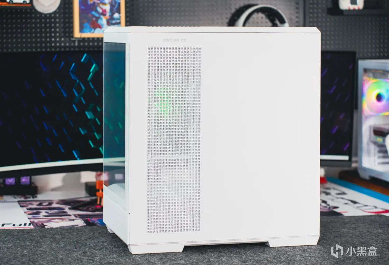 回到機箱方面,愛國者星璨·大嵐的整體設計可以說是之前產品星璨·嵐的加大版。主要特點是具備無立柱的雙面側透海景房設計,純白版本還使用了超透光超白玻鋼化玻璃,ARGB光污染展示的更淋漓盡致;內部兼容性也進一步加強,所以整機的具體尺寸也來到了467*240*513mm。
