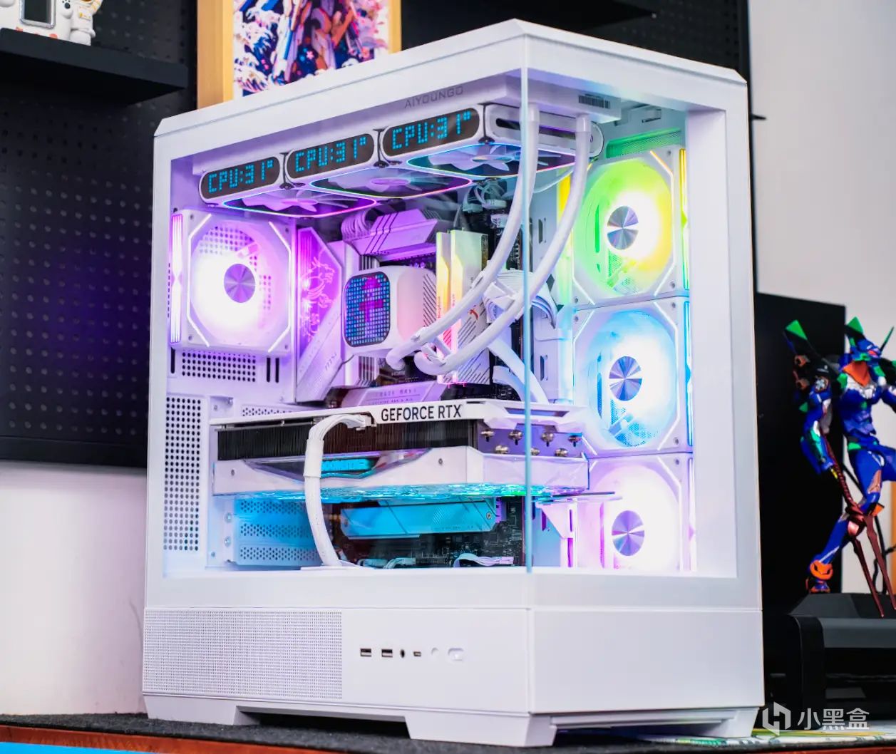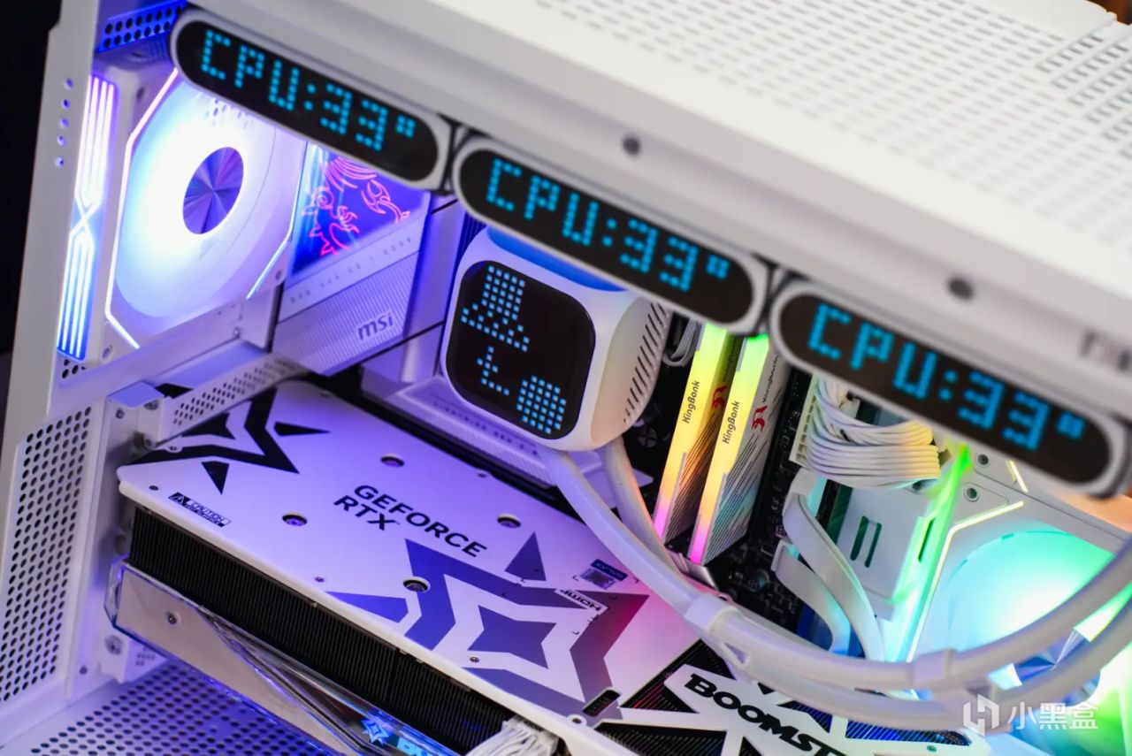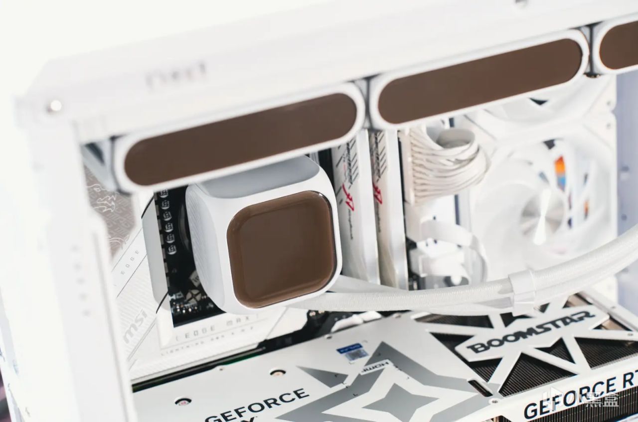 而水冷頭頂蓋也同樣如此,同樣搭載了一個看起來是棕色的多面點陣屏,尺寸也更大。效果圖看看下面的整機展示就知道了。