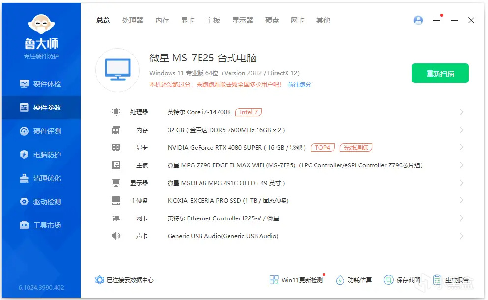 主板:微星MPG Z790 Edge Ti Max WiFi