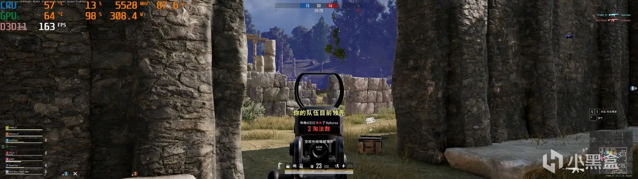 最後測試的是喫雞,在開啓5120*1440分辨率+100%渲染+全極致畫質選項下,遊戲幀數能保持在150~160FPS左右,體驗也還不錯。