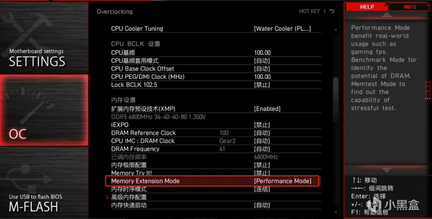 不過需要注意的是一定要在微星MPG Z790 Edge Ti Max WiFi主板BIOS的OC選項中,找到Memory Extension Mode開啓Performance Mode。