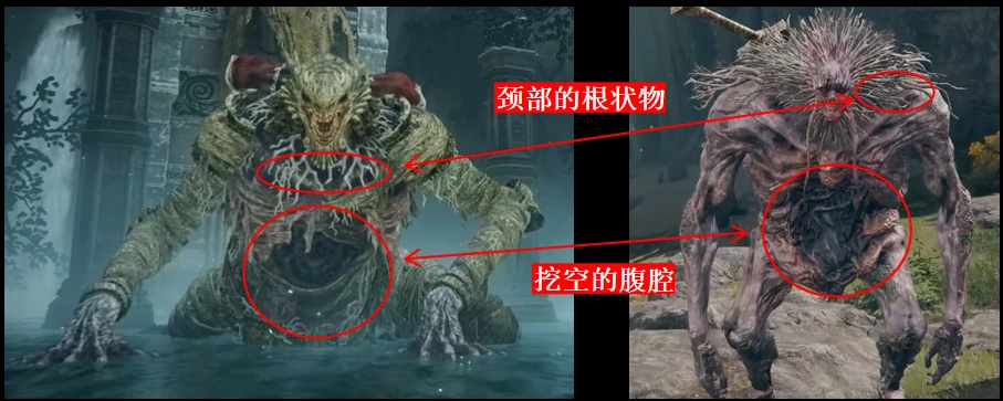 從龍人士兵的模型中進行解析,它本質顯然不是龍,而所擁有特徵更像山妖。然而山妖明確是黃金樹時代纔出現的後天產物,經排除後答案只剩下一個:龍人士兵和山妖都取材於他們的祖先——巨人。