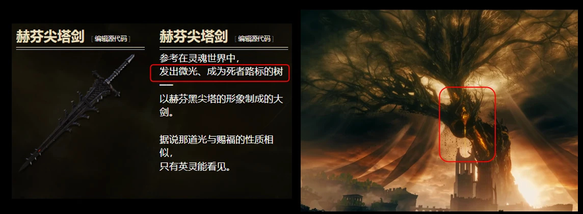 根據目前DLC提供的信息來看,陰影之地存在着一個更加明確的地標:暗影樹。根據赫芬黑尖塔的描述,我認爲赫芬黑尖塔就是遠古時代的暗影樹,兩者的形象並不衝突,尤其是“泛出微光”這個關鍵特徵。