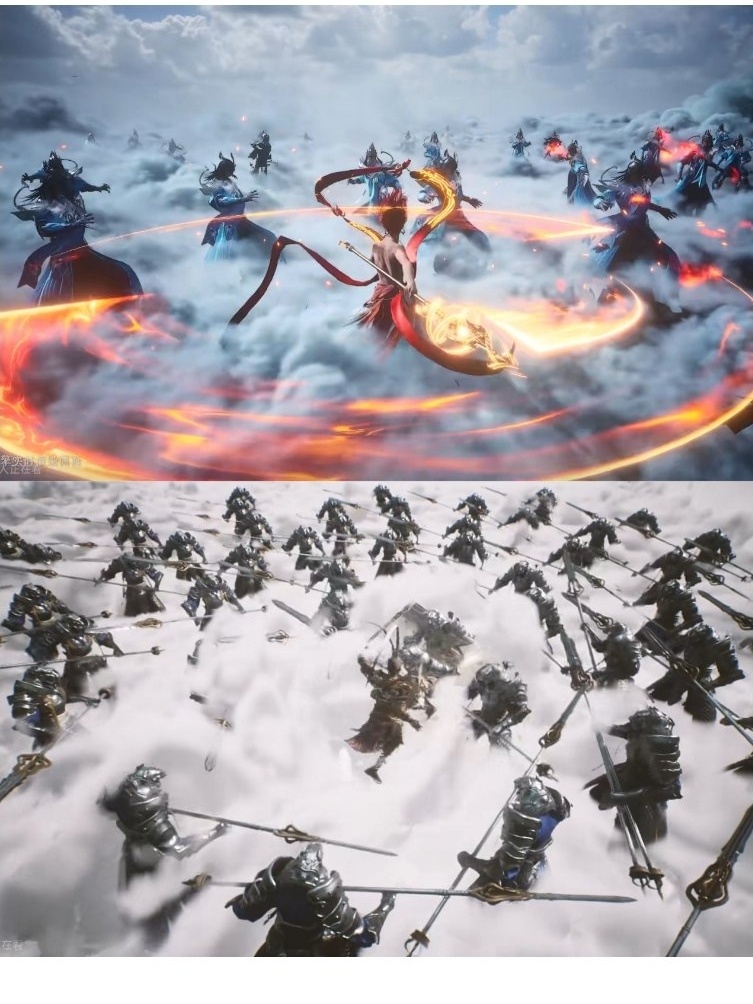 ②都是中国神话题材,有四大天王,还可以说得过去,但是这个构图,都是四大天王法天象地站在主角面前,OK,可以说是致敬。