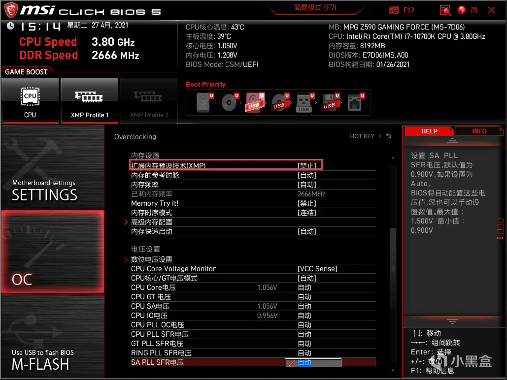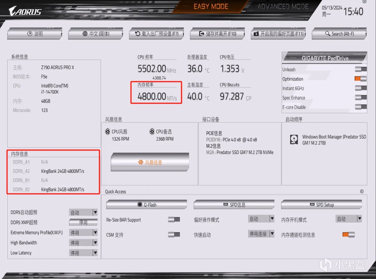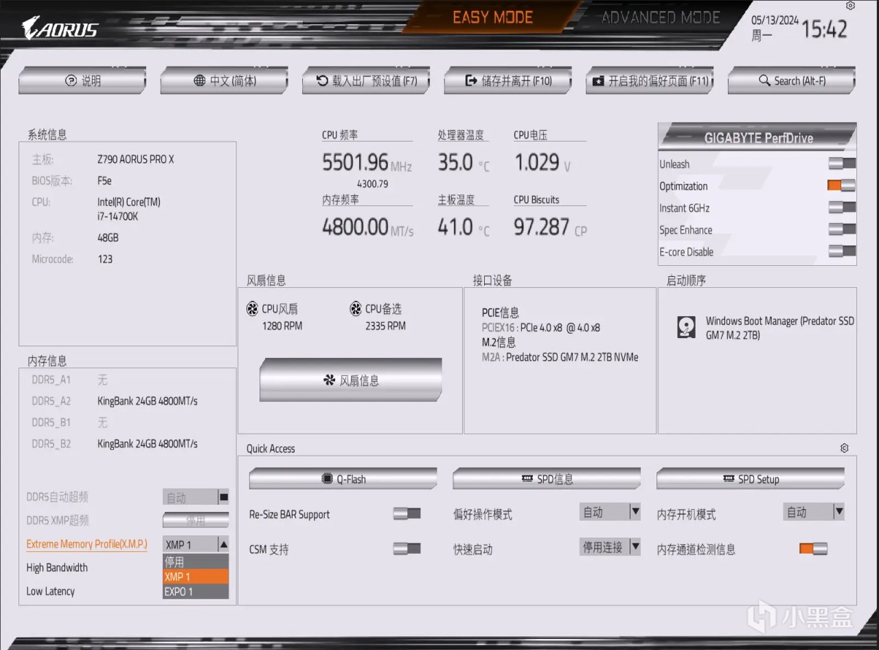 2️⃣主流板廠的BIOS基本都是圖形化設置,並且在首頁的簡易模式下提供了XMP設置選項,選擇開啓即可。